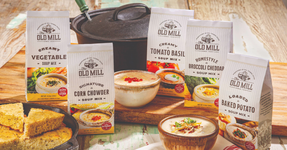 Old Mill Restaurant Manager Tim Fulton is a man who knows his soups. Every year, he sources and supervises the use of more than 37,000 pounds of potatoes, 15,000 pounds of corn, 15,000 pounds of onions, 2,250 gallons of half-and-half, and 1,600 gallons of clam juice to create Old Mill Corn Chowder. Tim’s impressed by the many ways home cooks “soup up” our convenient mixes by adding meats such as glazed or country ham, sausage, or smoked chicken, or seafood, like oysters or shrimp.