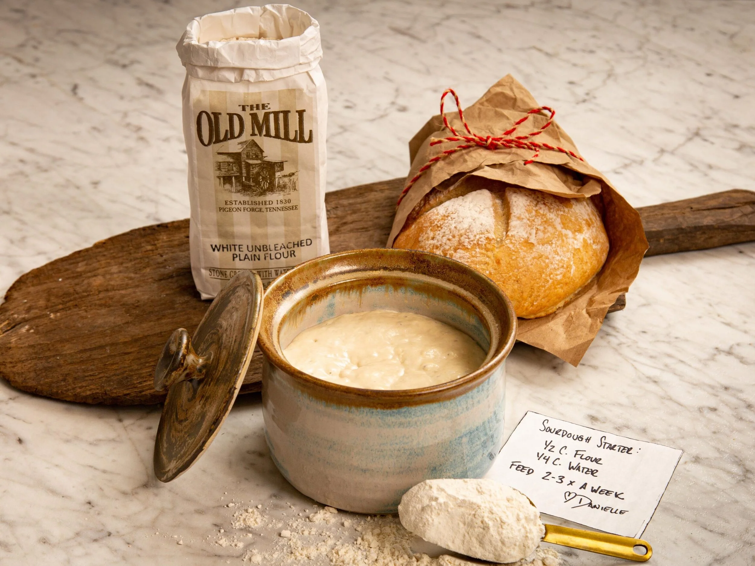 The foundation of any good bread starts with sourdough starter. Think of sourdough starter as nature’s own yeast, rather than using commercial yeast in bread. To create your starter, you will need a container with a loose-fitting lid, flour, and water. We’ve made the first step even easier with our Sourdough Starter Kit.